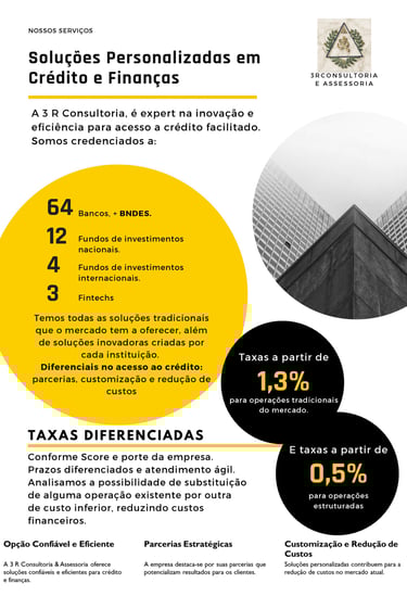 Na 3R Consultoria & Assessoria, ajudamos empresas a se tornarem mais fortes e eficientes, adequando seus custos financeiros, administrativos e de produção. Abra as portas para novas oportunidades conosco.